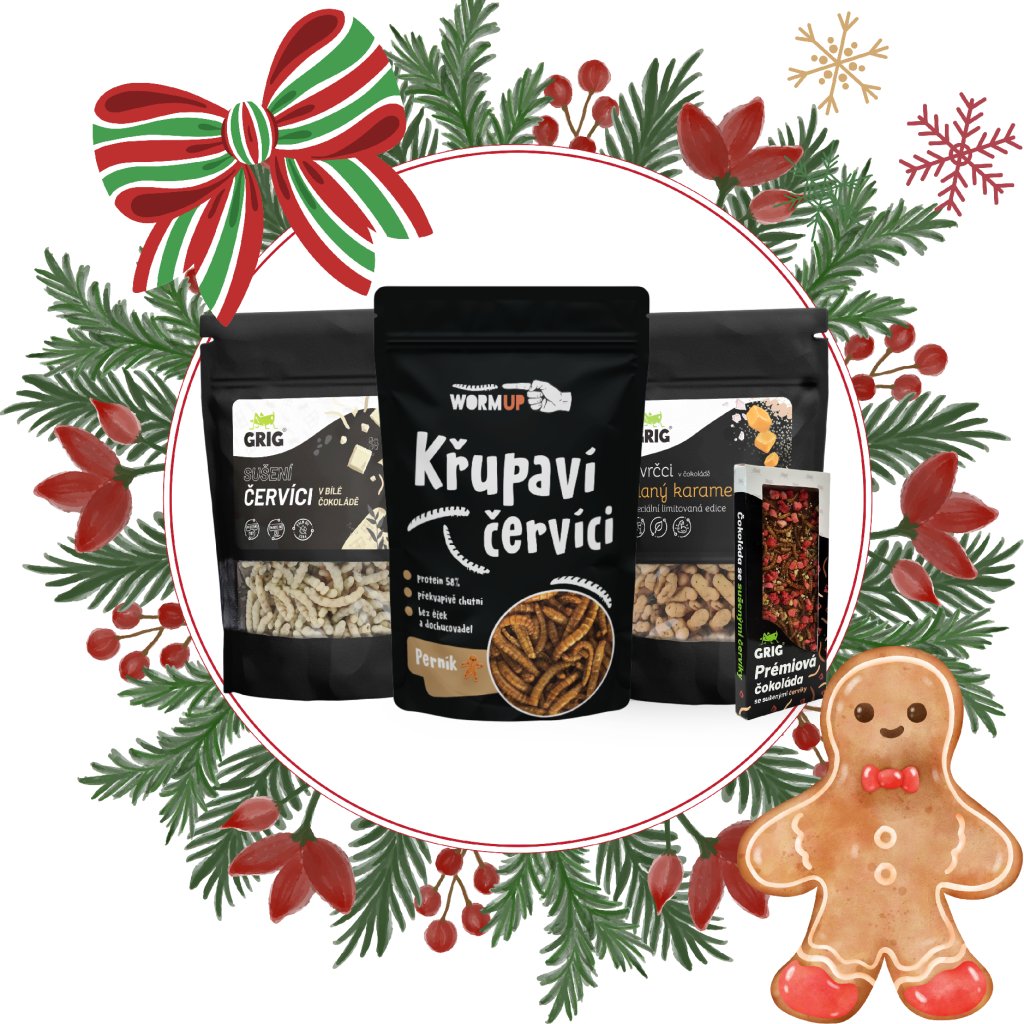 🪱 Červíky perník – Voňavá kombinácia medu, škorice a hmyzej chrumkavosti – chutí ako Vianoce v mini verzii.